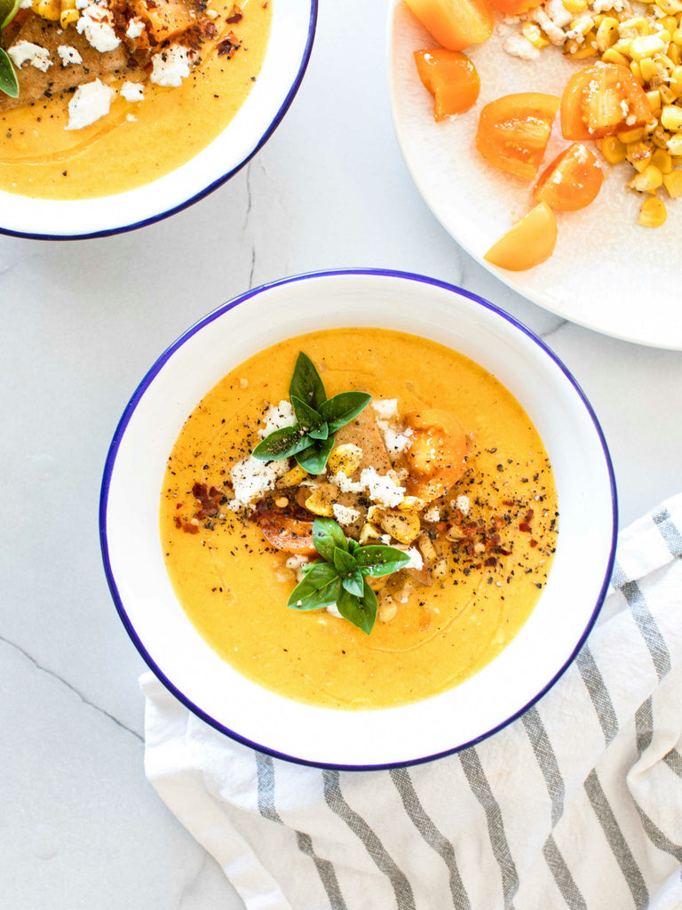 Gegrilde paprikasoep met rozemarijn en tijm, zacht en kruidig